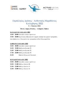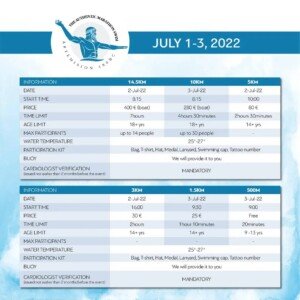 Παράλληλα, θα γίνουν αγώνες κολύμβησης ανοιχτής θαλάσσης  10χλμ, 5χλμ, 3χλμ, 1.5χλμ και 500μ. (για παιδιά) στο Πευκί Ευβοίας του Δήμου Ιστιαίας – Αιδηψού.